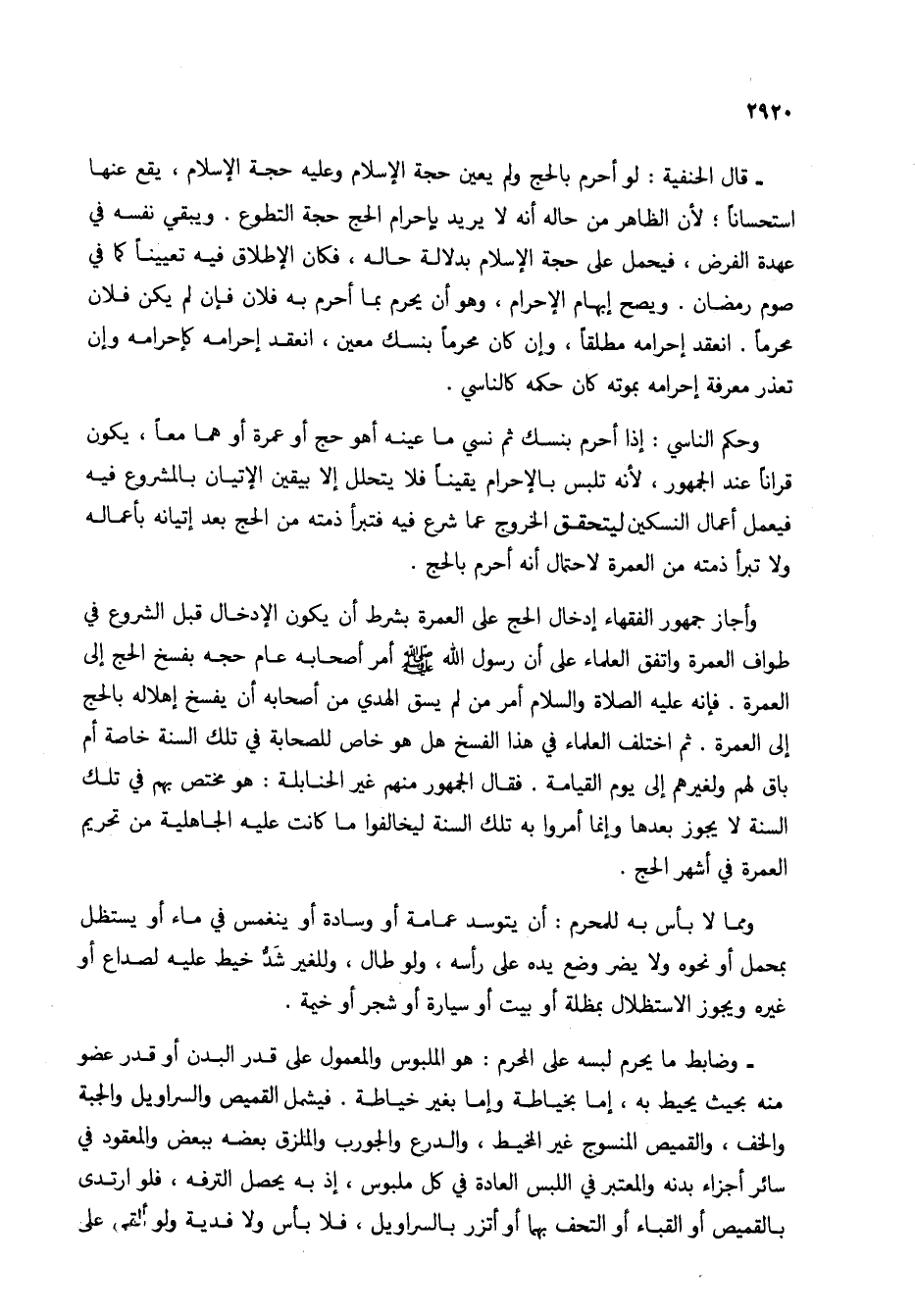 وحكم الناسي: إذا أحرم بنسك ثم نسي ما عينه أهو حج أو عمرة أو هما معاً، يكون قراناً عند الجمهور، لأنه تلبس بالإحرام يقيناً فلا يتحلل إلا بيقين الإتيان بالمشروع فيه فيعمل أعمال النسكين ليتحقق الخروج عما شرع فيه فتبرأ ذمته من الحج بعد إتيانه بأعماله ولا تبرأ ذمته من العمرة لاحتمال أنه أحرم بالحج.