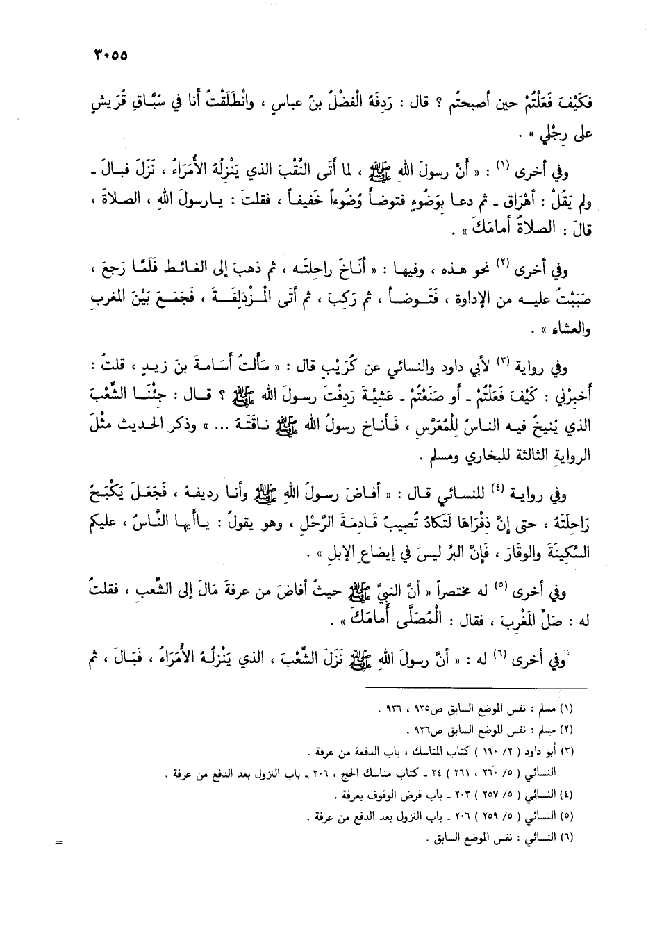 (5) النسائي (5/ 259) 206 - باب النزول بعد الدفع من عرفة.