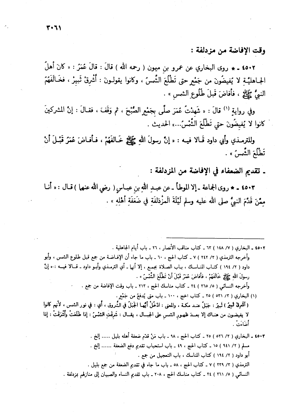 (1) البخاري (3/ 531) 25 - كتاب الحج، 100 - باب متى يُدفعُ من جمعٍ.
