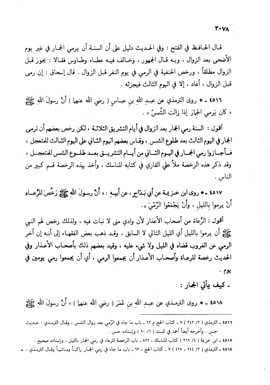 4516 - * روى الترمذي عن عبد الله بن عباس (رضي الله عنهما) أن رسول الله صلى الله عليه وسلم "كان يرمي الجمار إذا زالت الشمسُ".