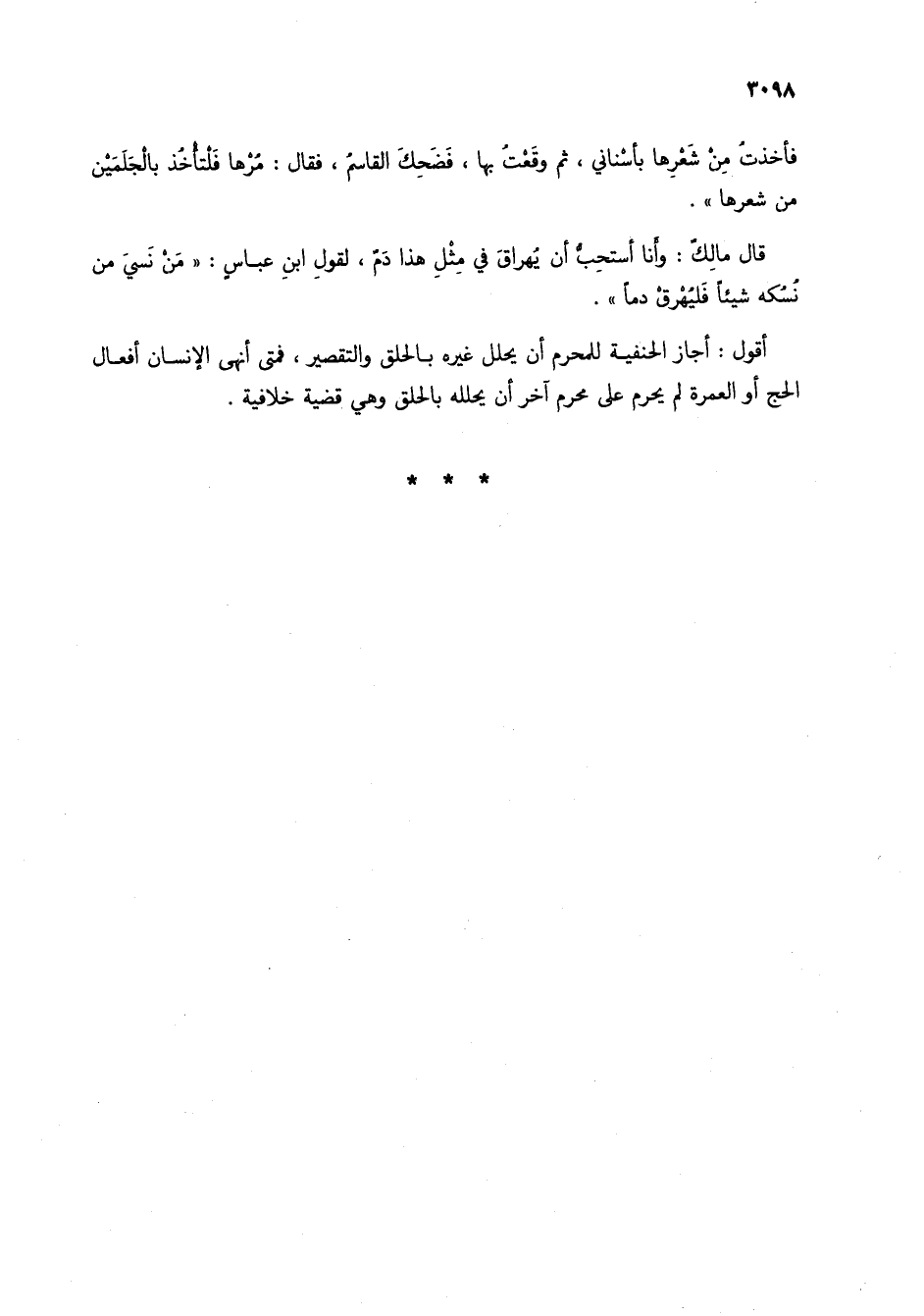 قال مالك: وأنا أستحِبُّ أن يُهراق في مثل هذا دمٌ، لقول ابن عباسٍ: "من نسي من نُسكه شيئاً فليُهْرقْ دماً".
