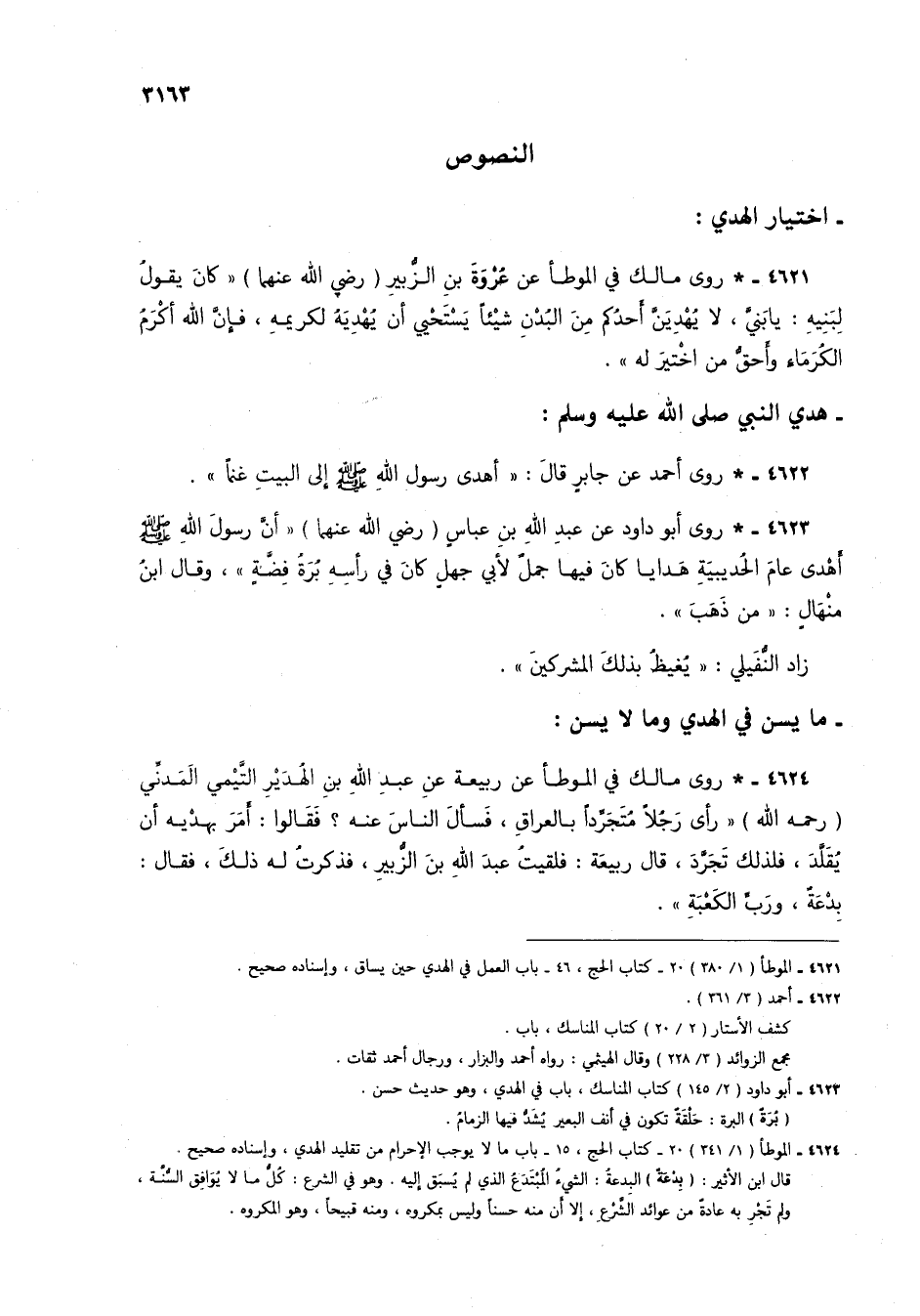 4621 - * روى مالك في الموطأ عن عُروة بن الزُّبير (رضي الله عنهما) "كان يقولُ لبنيه: يا بنيَّ، لا يُهدينَّ أحدُكم من البُدْنِ شيئاً يستحيي أن يُهديهُ لكريمه، فإن الله أكرمُ الكُرماء وأحقُّ من اختير له".
