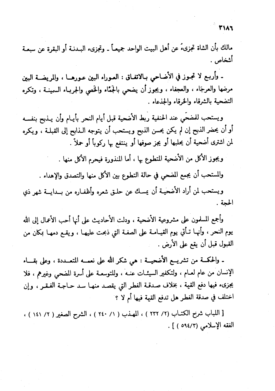 مالك بأن الشاة تجزيء عن أهل البيت الواحد جميعاً - وتجزيء البدنة أو البقرة عن سبعة أشخاص.