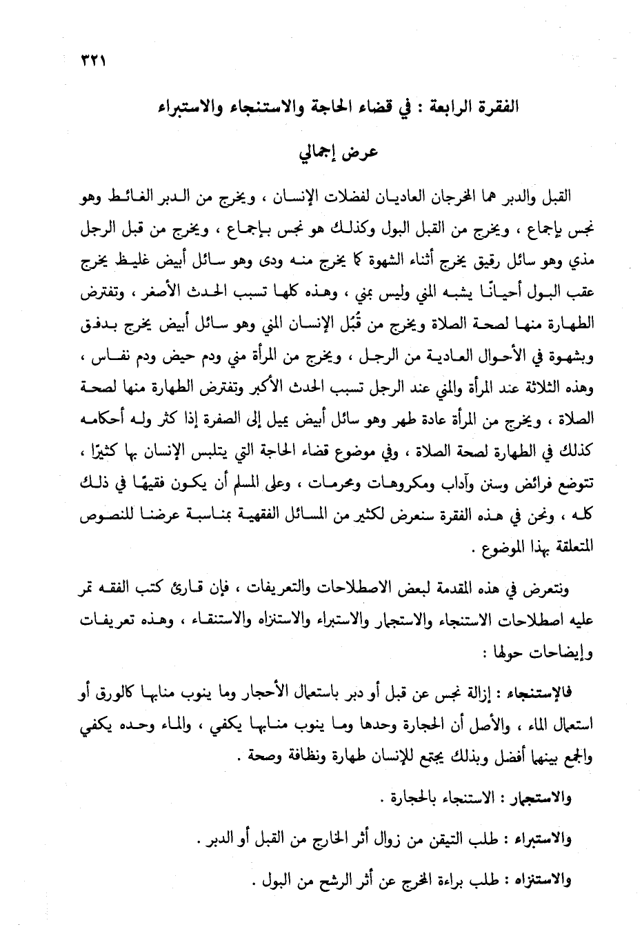 الفقرة الرابعة: في قضاء الحاجة والاستنجاء والاستبراء