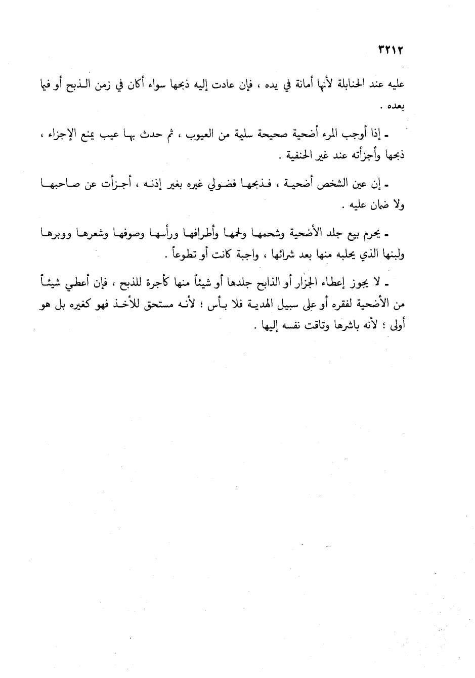 - يحرم بيع جلد الأضحية وشحمها ولحمها وأطرافها ورأسها وصوفها وشعرها ووبرها ولبنها الذي يحلبه منها بعد شرائها، واجبة كانت أو تطوعاً.