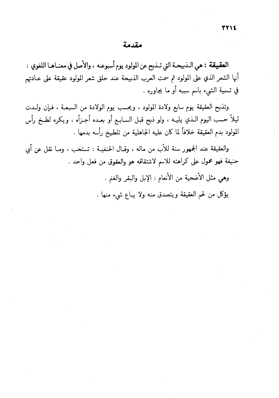 العقيقة: هي الذبيحة التي تذبح عن المولود يوم أسبوعه، والأصل في معناها اللغوي: أنها الشعر الذي على المولود ثم سمت العرب الذبيحة عند حلق شعر المولود عقيقة على عادتهم في تسمية الشيء باسم سببه أو ما يجاوره.