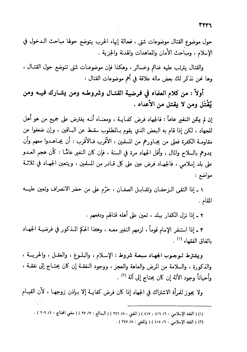 (1) (الفقه الإسلامي: 6/ 416، 417) (المغني: 8/ 346) (البدائع: 7/ 97) (مغني المحتاج: 4/ 209).