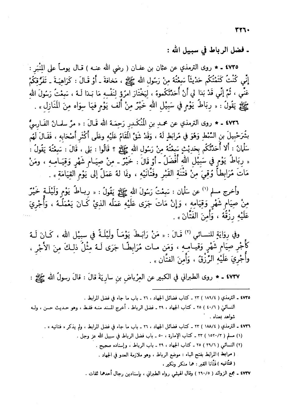 4735 - الترمذي _4/ 189) 23 - كتاب فضائل الجهاد، 26 - باب ما جاء في فضل المرابط.