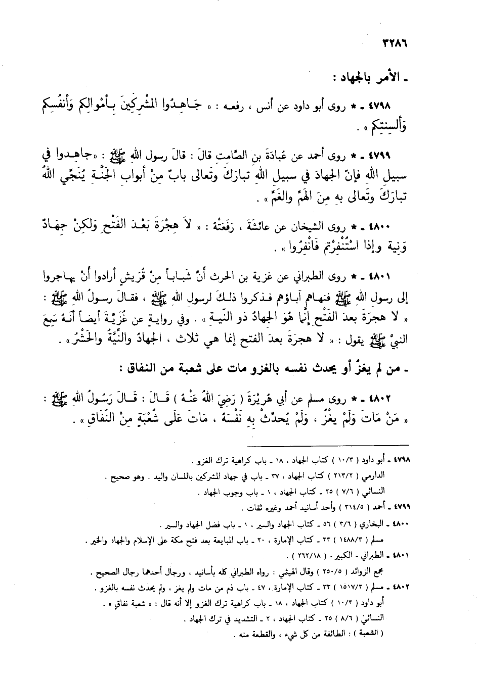 4798 - * روى أبو داود عن أنس، رفعه: "جاهدوا المشركين بأموالكم وأنفسكم وألسنتكم".