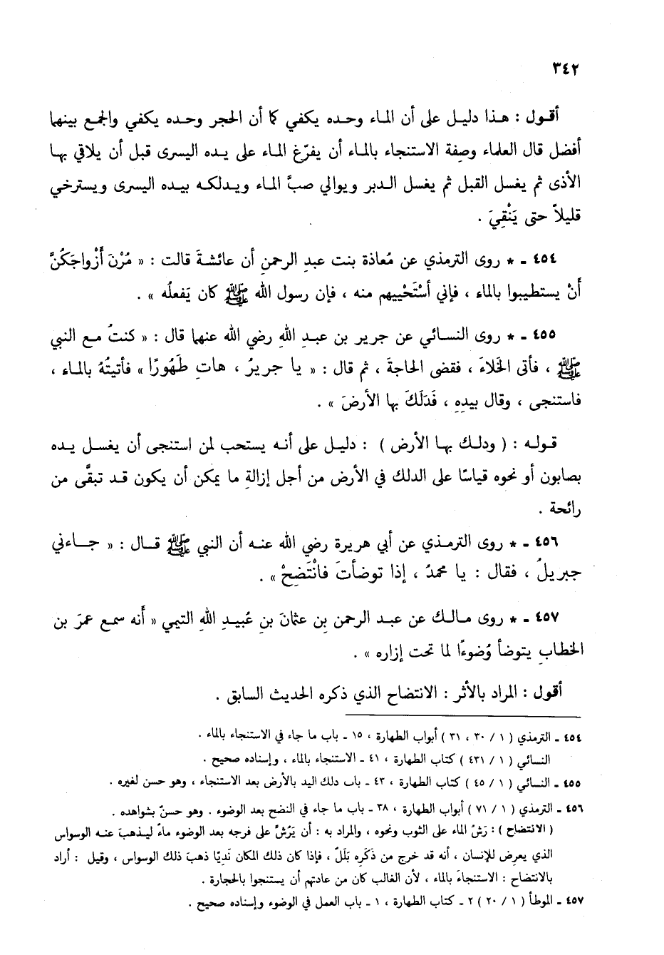 456 - * روى الترمذي عن أبي هريرة رضي الله عنه أن النبي صلى الله عليه وسلم قال: "جاءني جبريل، فقال: يا محمد، إذا توضأت فانتضح".