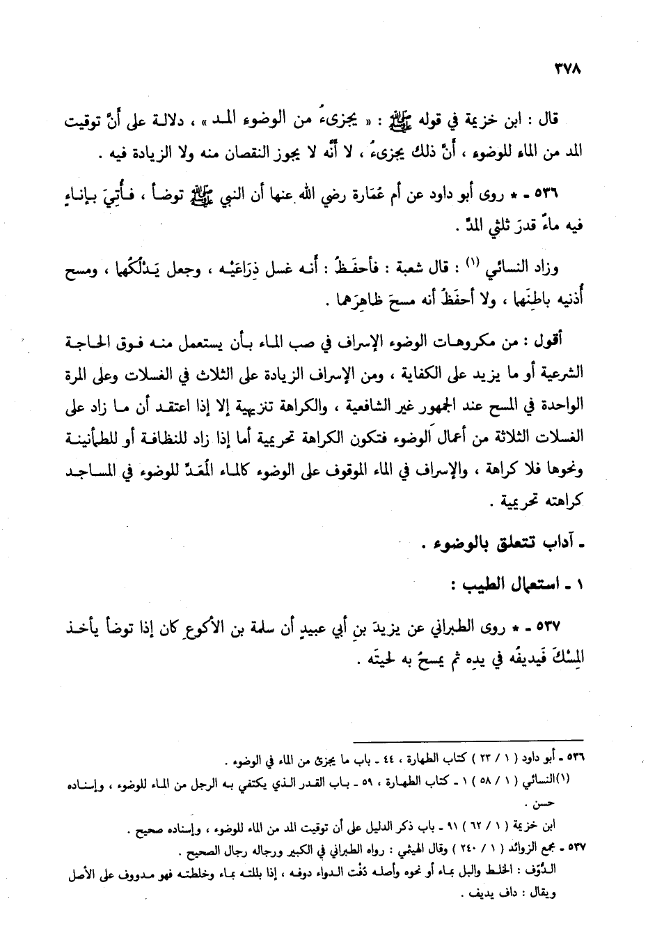 536 - أبو داود (1/ 23) كتاب الطهارة، 44 - باب ما يجزئ من الماء في الوضوء.