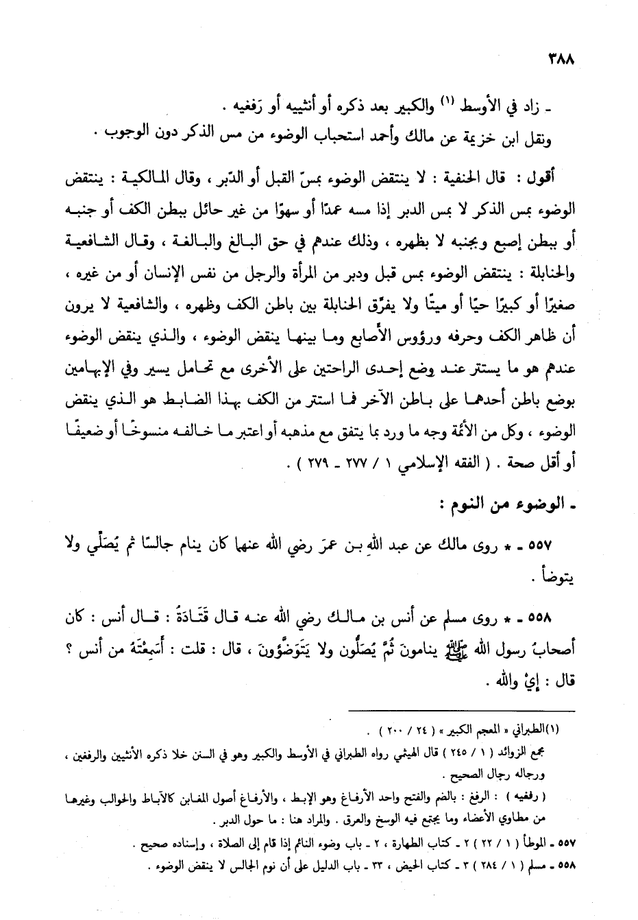 557 - * روى مالك عن عبد الله بن عمر رضي الله عنهما كان ينام جالساً ثم يُصلي ولايتوضأ.
