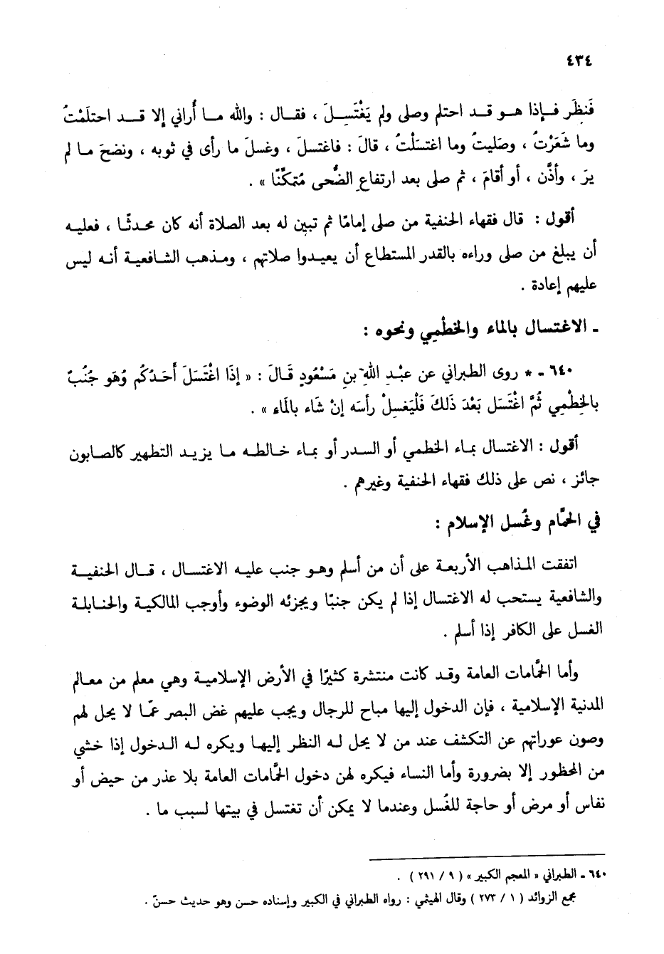 640 - * روى الطبراني عن عبد الله بن مسعود قال: "إذا اغتسل أحدُكم وهو جُنُبٌ بالخطمي ثم اغتسل بعد ذلك فليغسلْ رأسه إن شاء بالماء".