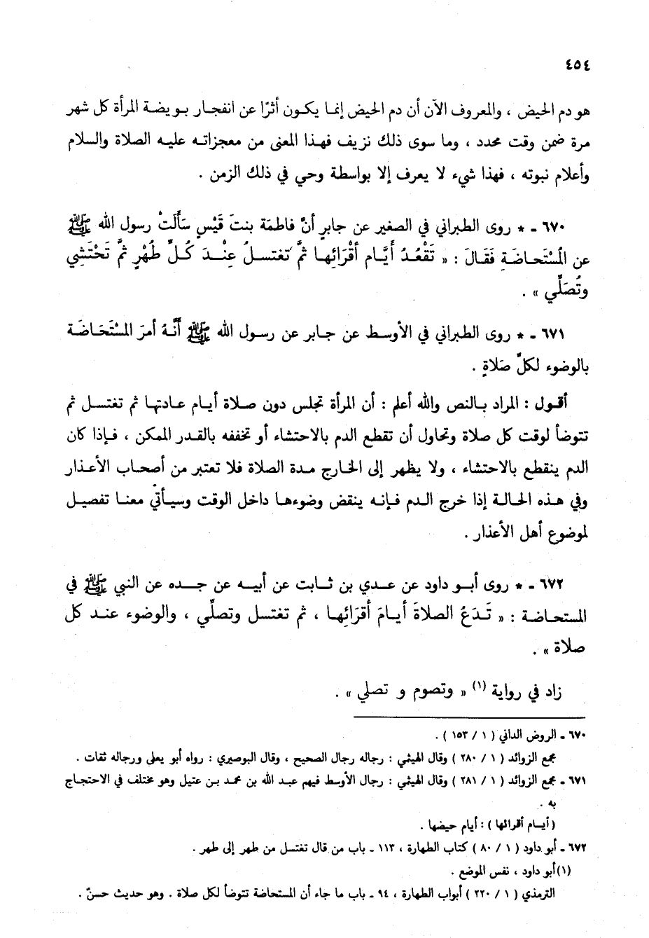 671 - * روى الطبراني في الأوسط عن جابر عن رسول الله صلى الله عليه وسلم أنه أمر المستحاضة بالوضوء لكل صلاة.