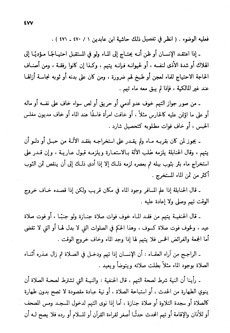 - من صور جواز التيمم خوف عدو آدمي أو حريق أو لص سواء خاف على نفسه أو ماله أو على ما اؤتمن عليه كالحارس مثلاً، أو خافت امرأة فاسقاً عند الماء أو خاف مديون مفلس الحبس، أو خاف فوات مطلوبه كتحصيل شارد.