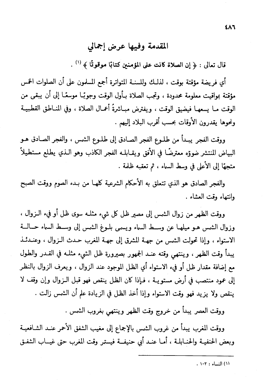 قال تعالى: {إِنَّ الصَّلَاةَ كَانَتْ عَلَى الْمُؤْمِنِينَ كِتَابًا مَوْقُوتًا} (1).