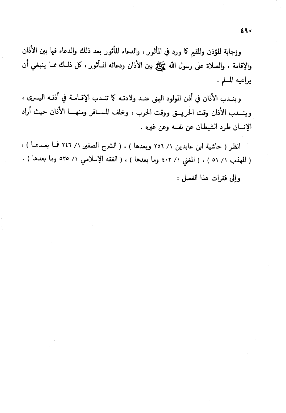 انظر (حاشية ابن عابدين 1/ 256 وبعدها)، (الشرح الصغير 1/ 246 فما بعدها)، (المهذب 1/ 51)، (المغني 1/ 402 وما بعدها)، (الفقه الإسلامي 1/ 535 وما بعدها).