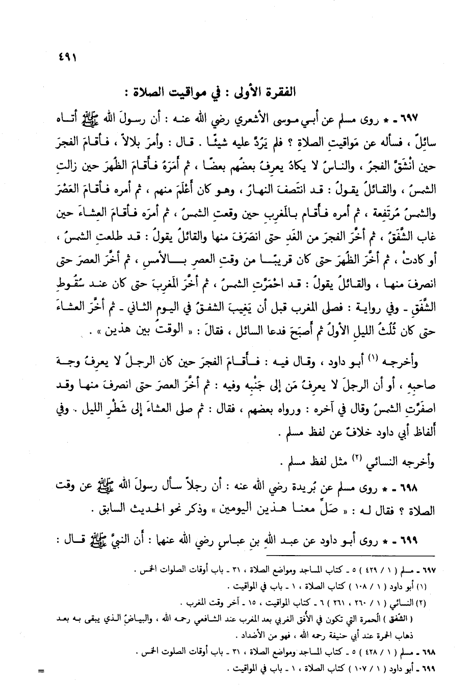 698 - * روى مسلم عن بُريدة رضي الله عنه: أن رجلاً سأل رسول الله صلى الله عليه وسلم عن وقت الصلاة؟ فقال له: "صلِّ معنا هذين اليومين" وذكر نحو الحديث السابق.