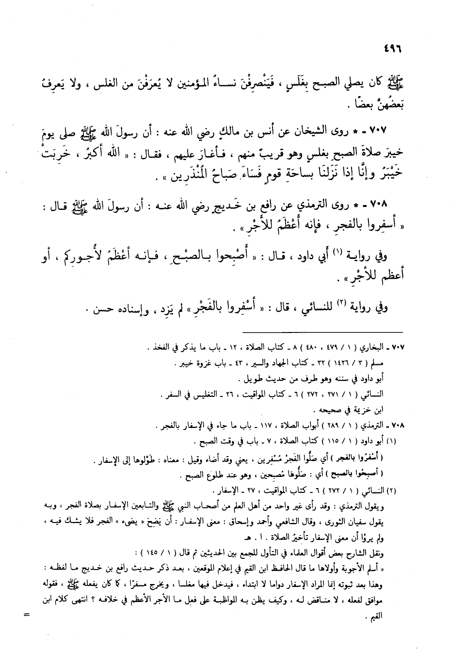 708 - الترمذي (2/ 289) أبواب الصلاة، 1170 باب ما جاء في الإسفار بالفجر.