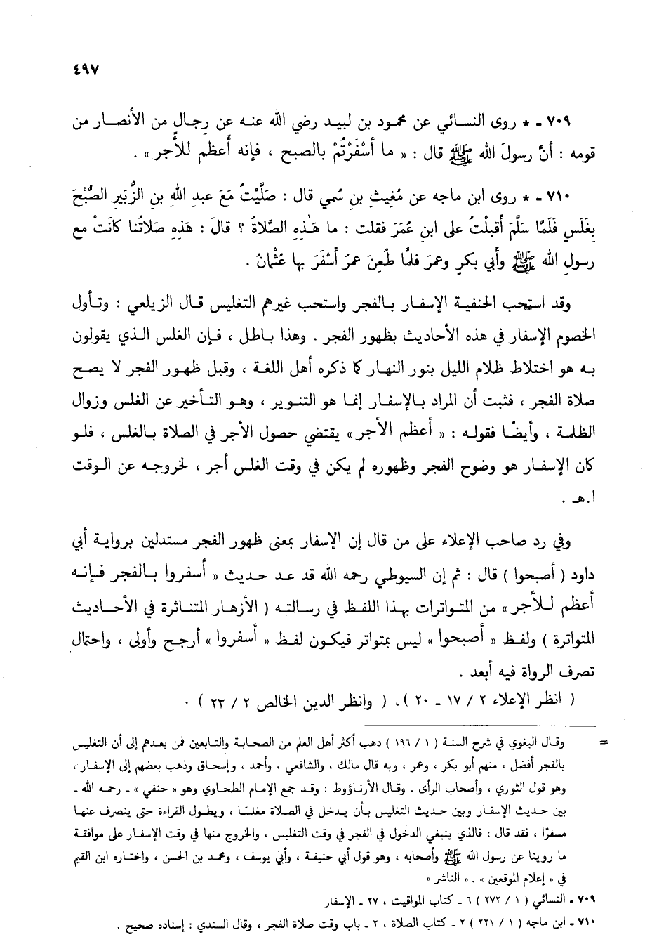 709 - النسائي (1/ 272) 6 - كتاب المواقيت، 27 - الإسفار.