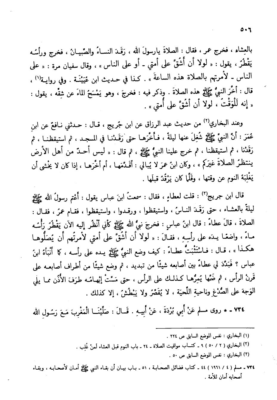 734 - * روى مسلم عن أبي بُردة، عن أبيه. قال: صلينا المغرب مع رسول الله