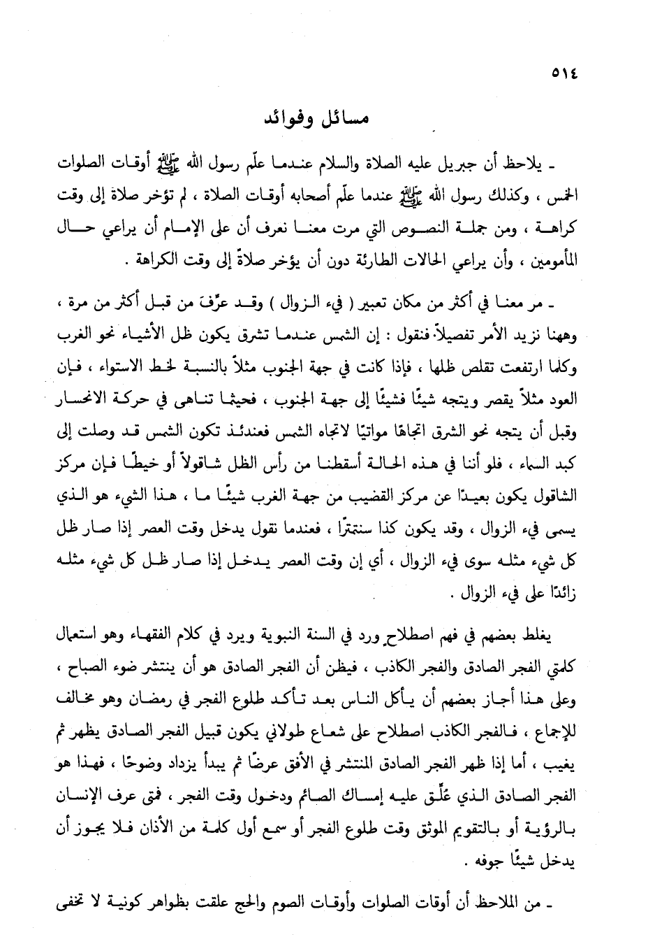 - ومن الملاحظ أن أوقات الصلوات وأوقات الصوم والحج علقت بظواهر كونية لا تخفى