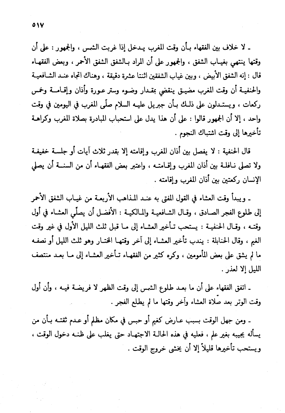 - اتفق الفقهاء على أن ما بعد طلوع الشمس إلى وقت الظهر لا فريضة فيه، وأن أول وقت الوتر بعد صلاة العشاء وآخر وقتها ما لم يطع الفجر.