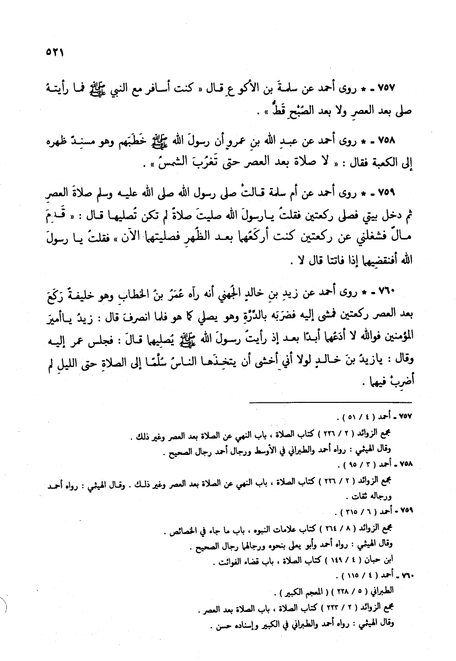 757 - * روى أحمد عن سلمة بن الأكوع قال: "كنت أسافر مع النبي صلى الله عليه وسلم فما رأيته صلى بعد العصر ولا بعد الصبح قطُّ".