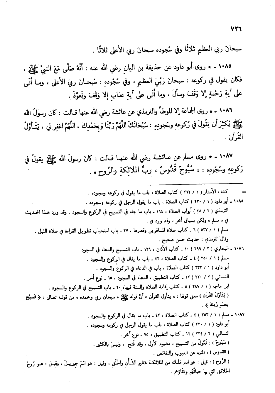 1087 - مسلم (1/ 353) 4 - كتاب الصلاة، 42 - باب ما يقال في الركوع والسجود.