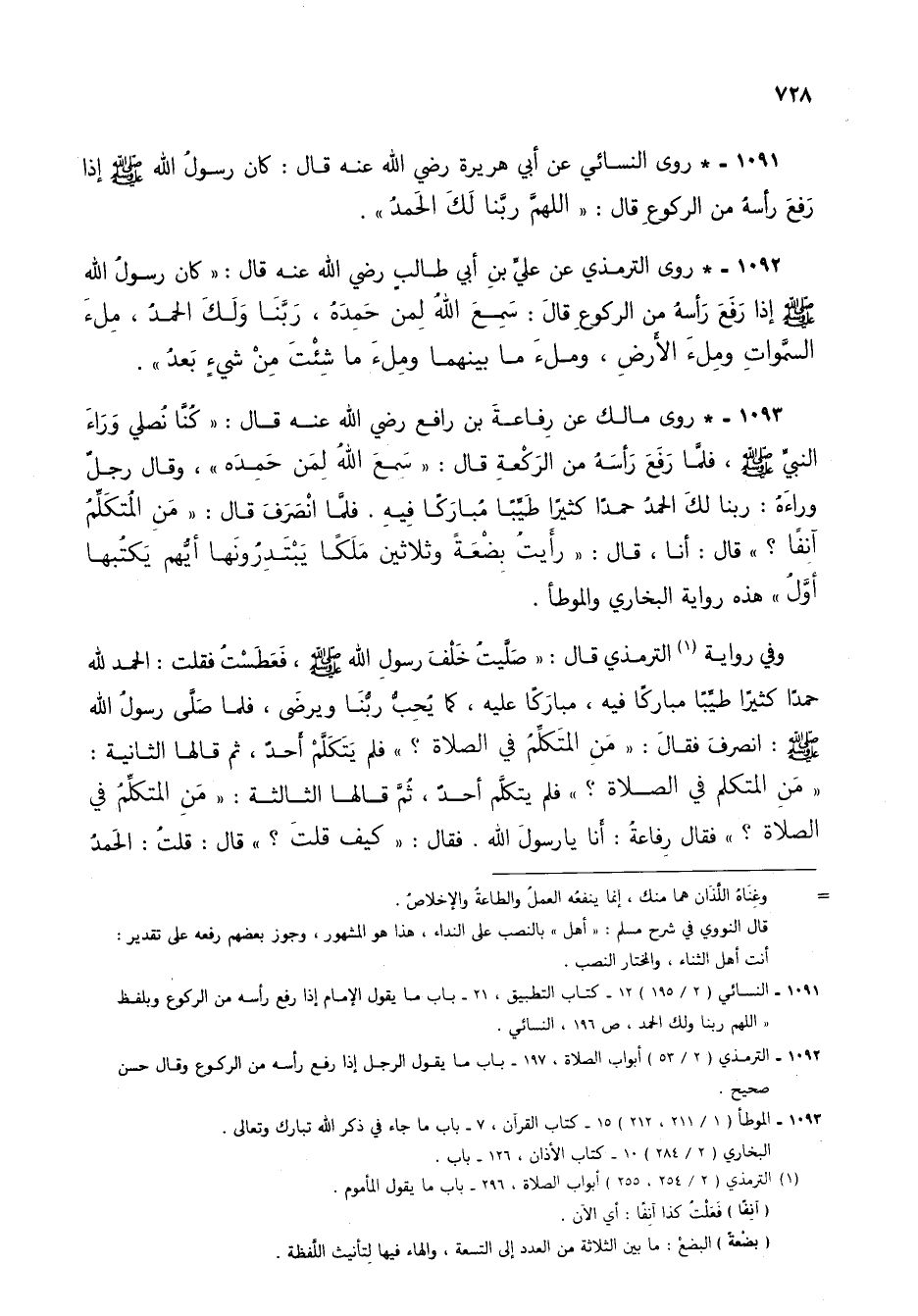 1091 - * روى النسائي عن أبي هريرة رضي الله عنه قال: كان رسول الله صلى الله عليه وسلم إذا رفع رأسه من الركوع قال: "اللهم ربنا لك الحمد".