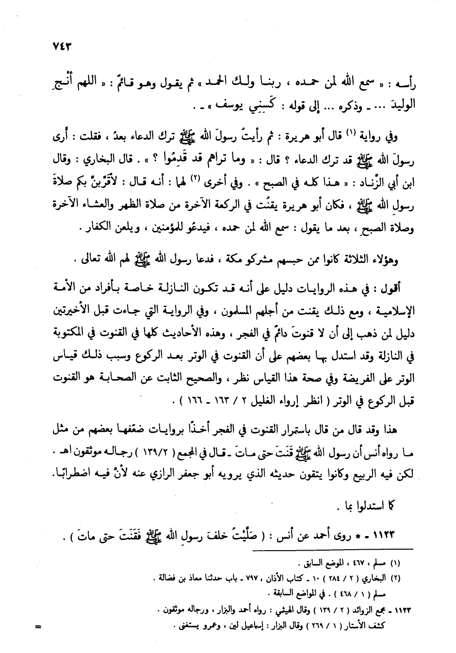 1123 - * روى أحمد عن أنس: (صليت خلف رسول الله صلى الله عليه وسلم فقنت حتى مات).