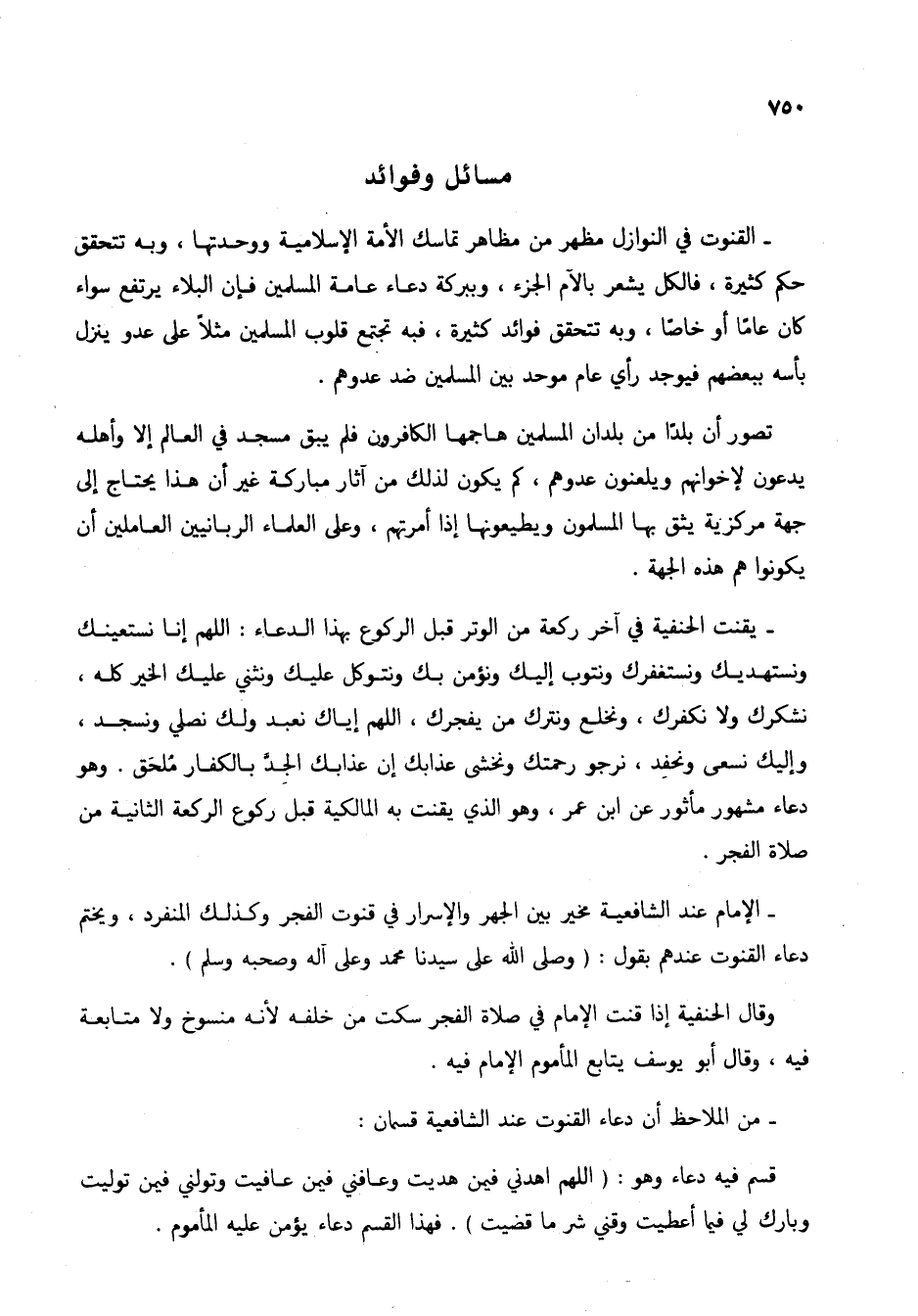 - من الملاحظ أن دعاء القنوت عند الشافعية قسمان: