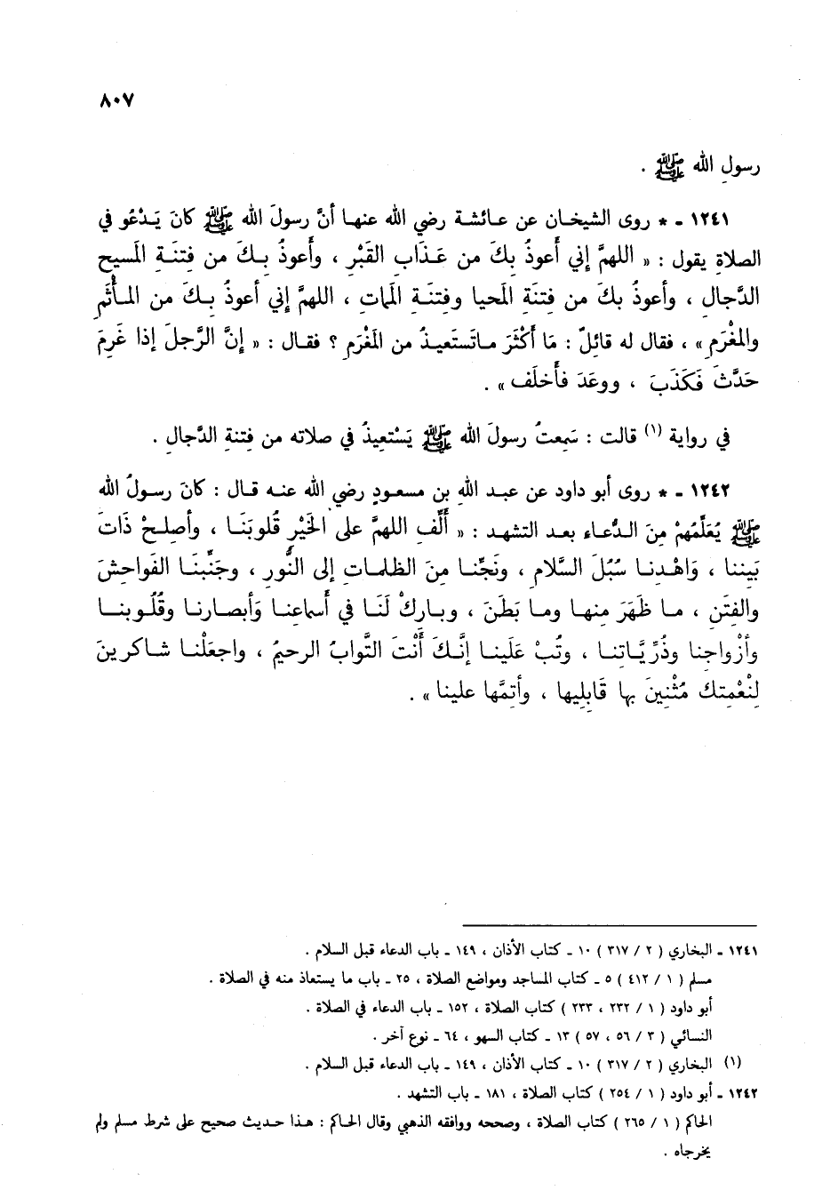 1241 - البخاري (2/ 317) 10 - كتاب الأذان، 149 - باب الدعاء قبل السلام.