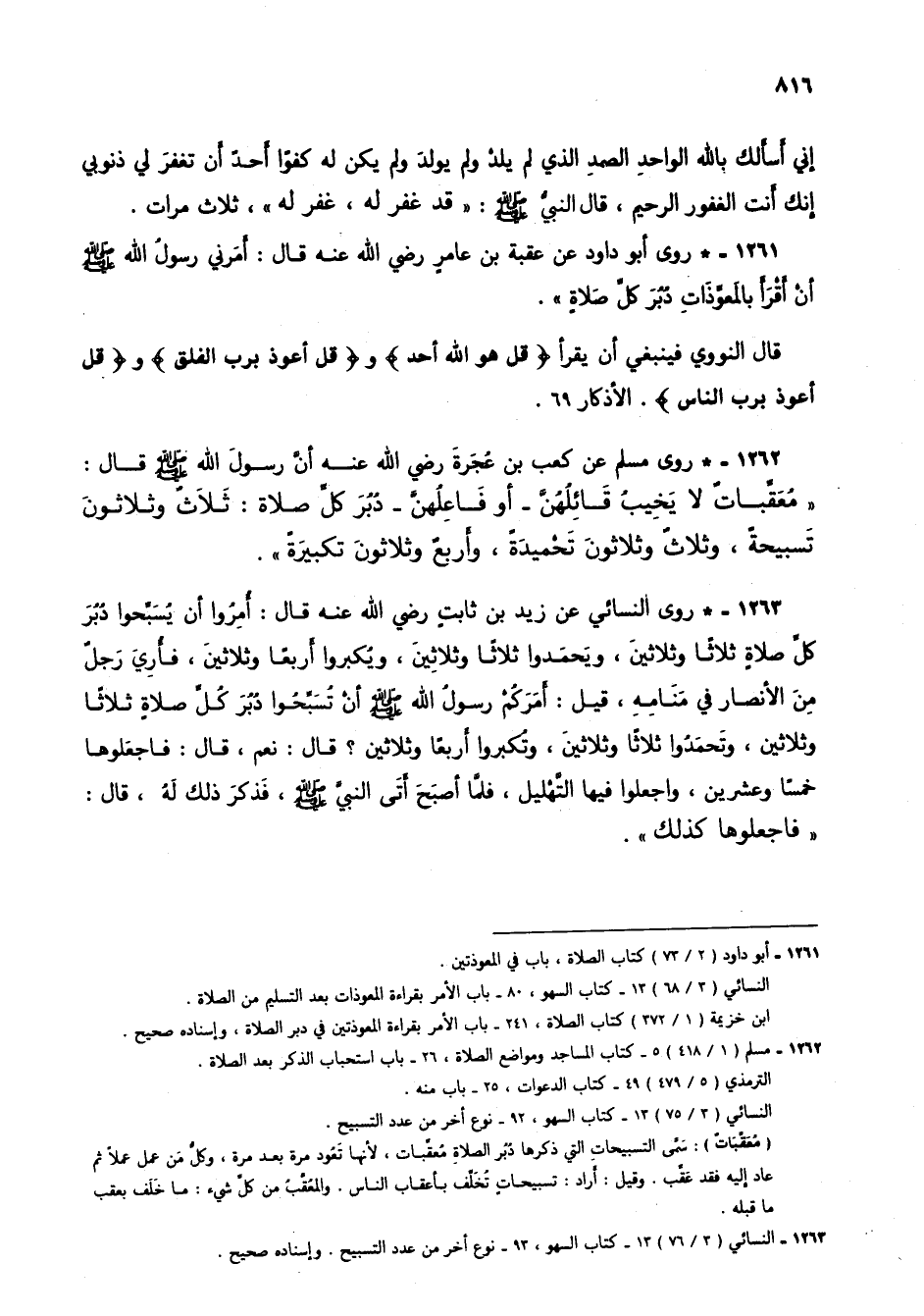 1261 - * روى أبو داود عن عقبة بن عامر رضي الله عنه قال: أمرني رسول الله صلى الله عليه وسلم أن أقرأ بالمعوذات دبر كل صلاة".