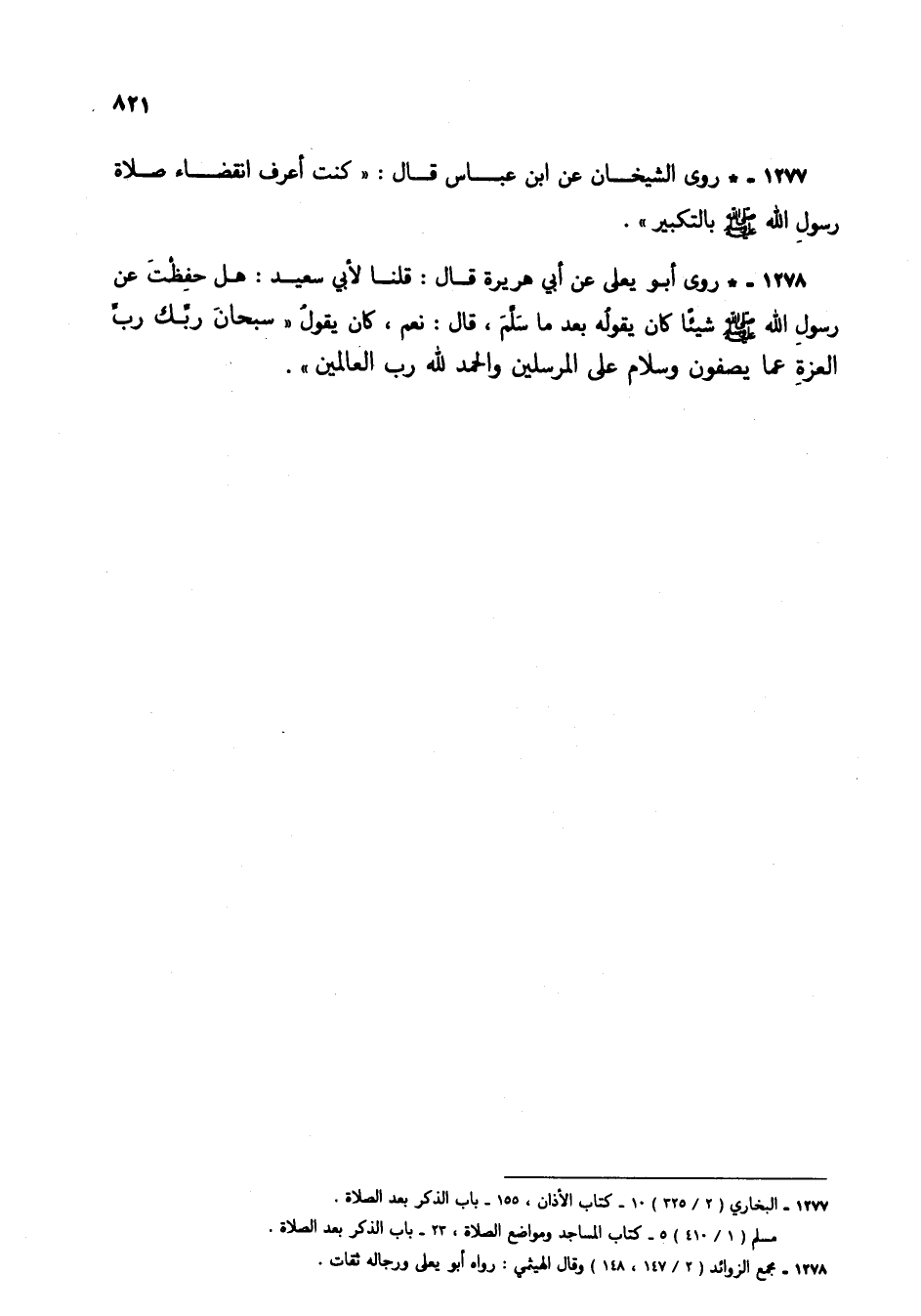 1277 - * روى الشيخان عن ابن عباس قال: "كنت أعرف انقضاء صلاة رسول الله صلى الله عليه وسلم بالتكبير".