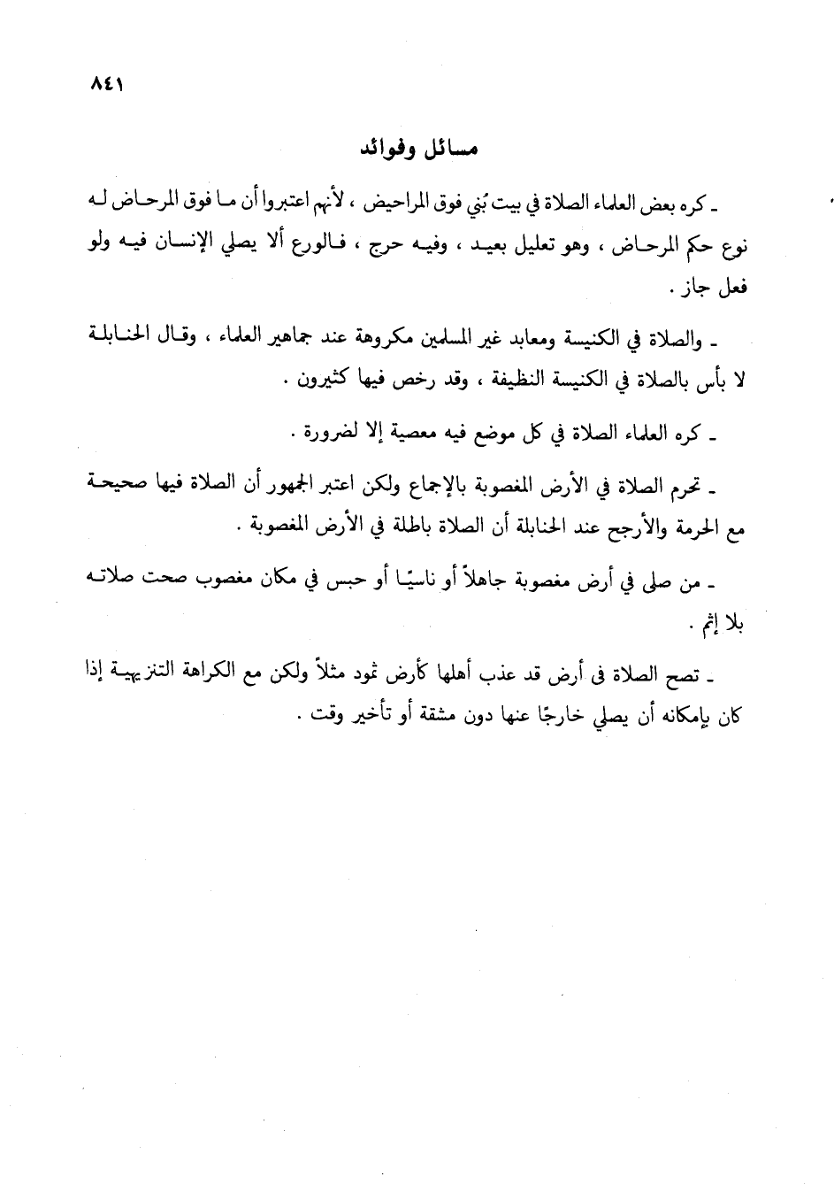 - والصلاة في الكنيسة ومعابد غير المسلمين مكروهة عند جماهير العلماء، وقال الحنابلة لا بأس بالصلاة في الكنيسة النظيفة، وقد رخص فيها كثيرون.