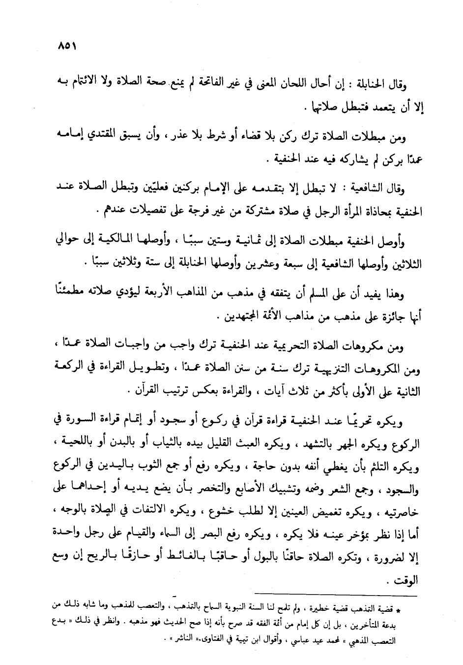 وهذا يفيد أن على المسلم أن يتفقه في مذهب من المذاهب الأربعة ليؤدي صلاته مطمئناً أنها جائزة على مذهب من مذاهب الأئمة المجتهدين.