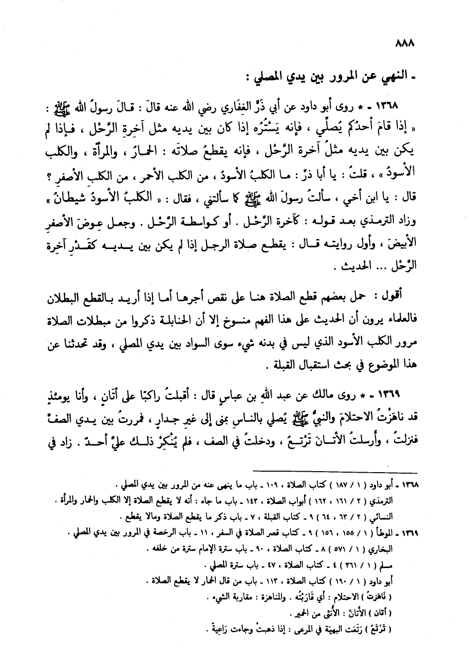 1368 - أبو داود (1/ 187) كتاب الصلاة، 109 - باب ما ينهى عنه من المرور بين يدي المصلي.