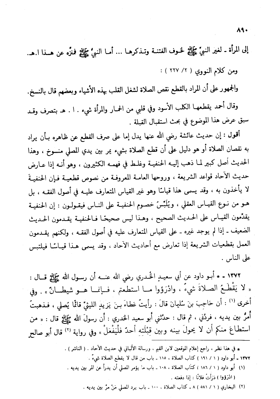 1372 - أبو داود (1/ 191) كتاب الصلاة، 115 - باب من قال لا يقطع الصلاة شيء.