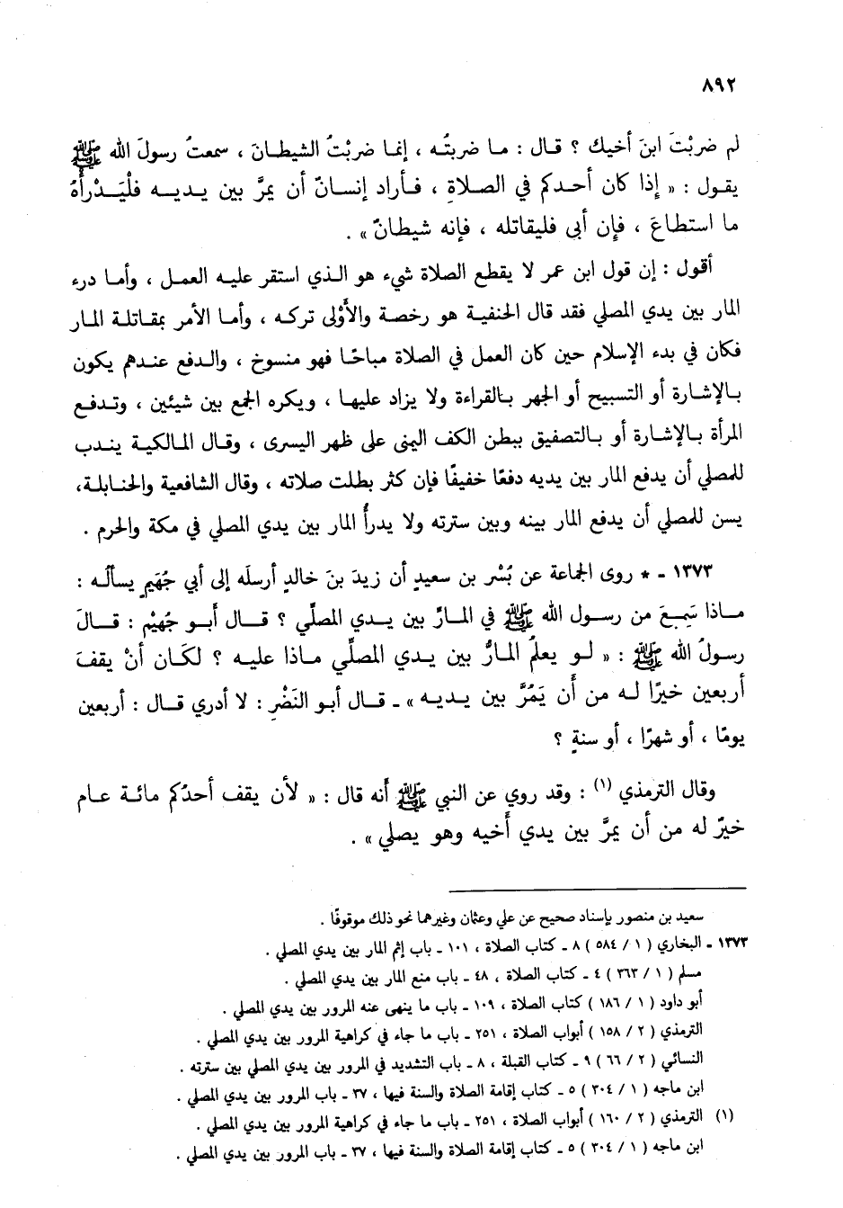 (1) الترمذي (2/ 160) أبواب الصلاة، 251 - باب ما جاء في كراهية المرور بين يدي المصلي.