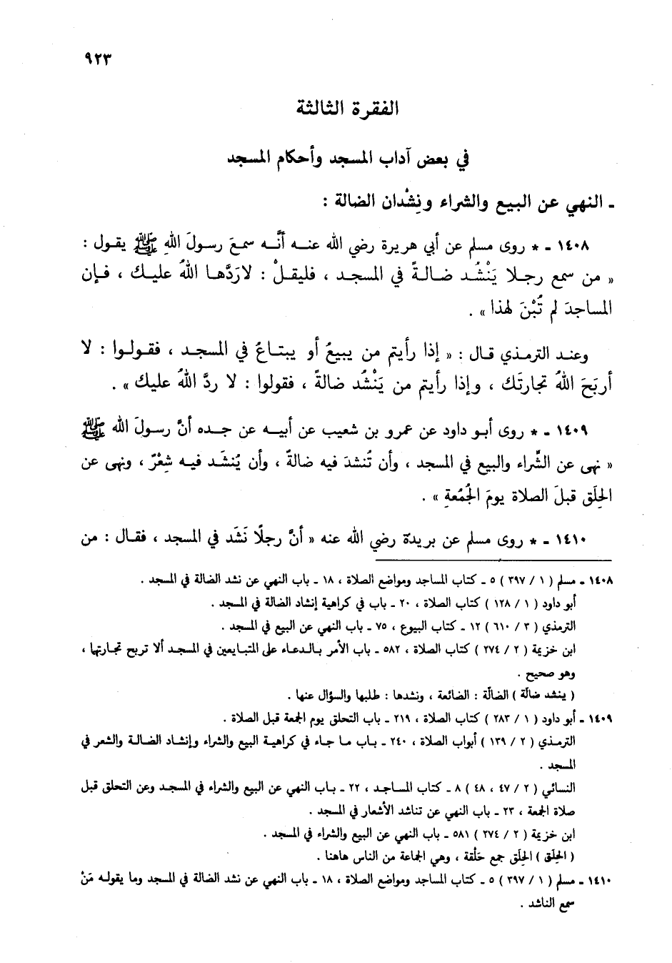 1410 - * روى مسلم عن بريدة رضي الله عنه "أن رجلاً نشد في المسجد، فقال: من