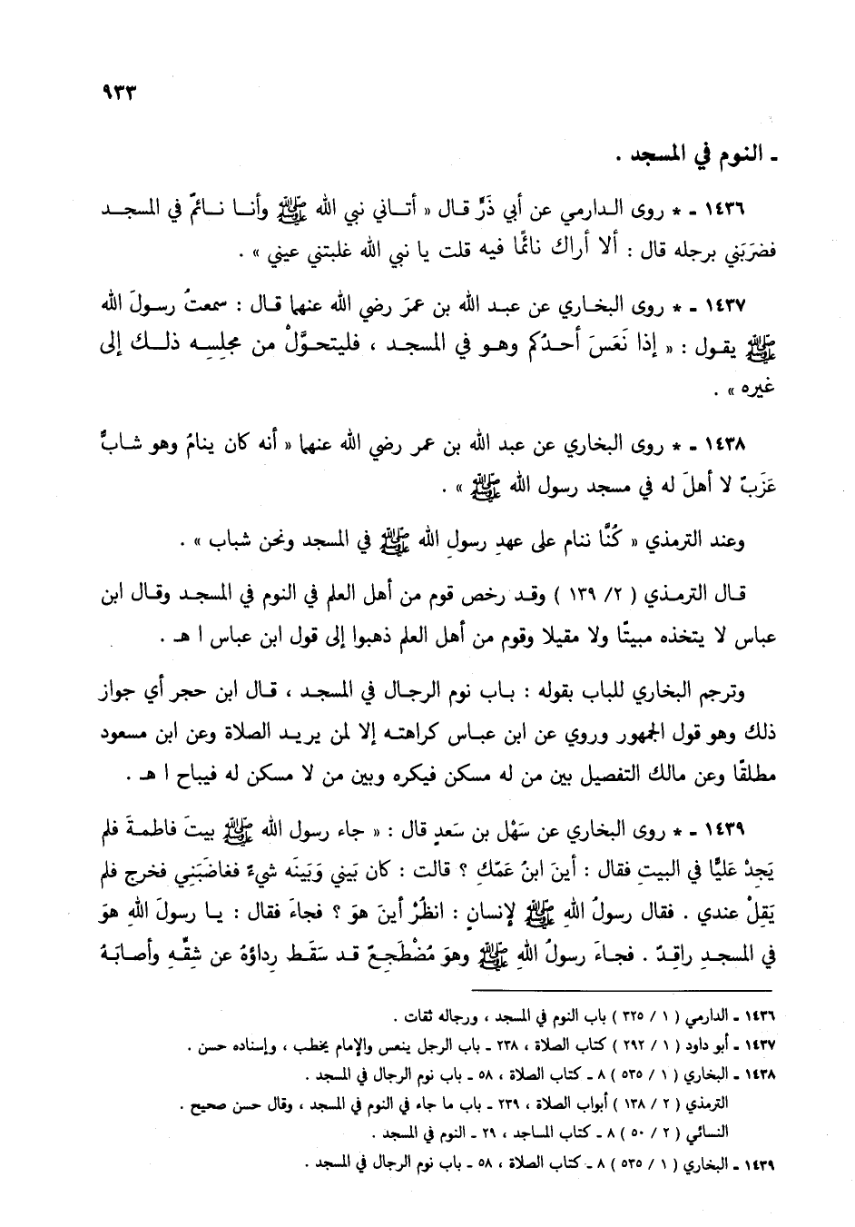 1438 - * روى البخاري عن عبد الله بن مر رضي الله عنهما "أنه كان ينام وهو شاب عزب لا أهل له في مسجد رسول الله صلى الله عليه وسلم".