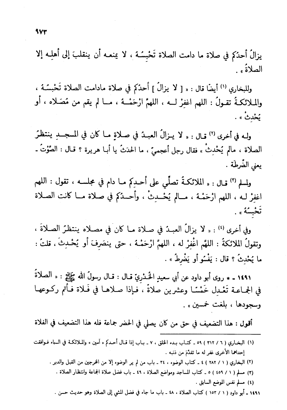 (3) مسلم (1/ 459) 5 - كتاب المساجد ومواضع الصلاة، 49 - باب فضل صلاة الجماعة وانتظار الصلاة.