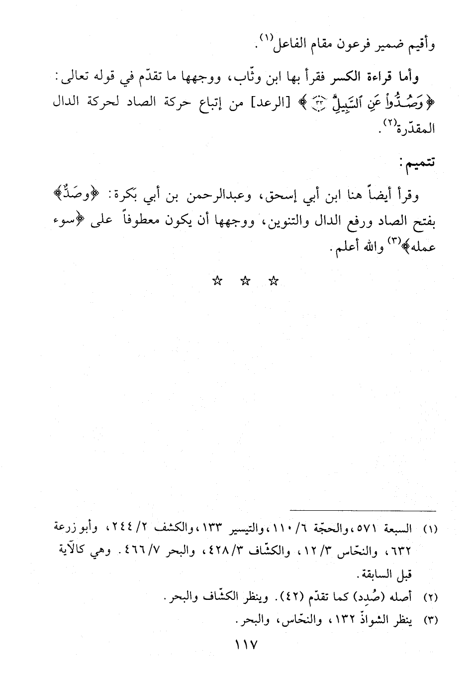 جماعة من الصحابة والتابعين، ووجهها أنه نعت (لله) ، وهو اسم فاعل