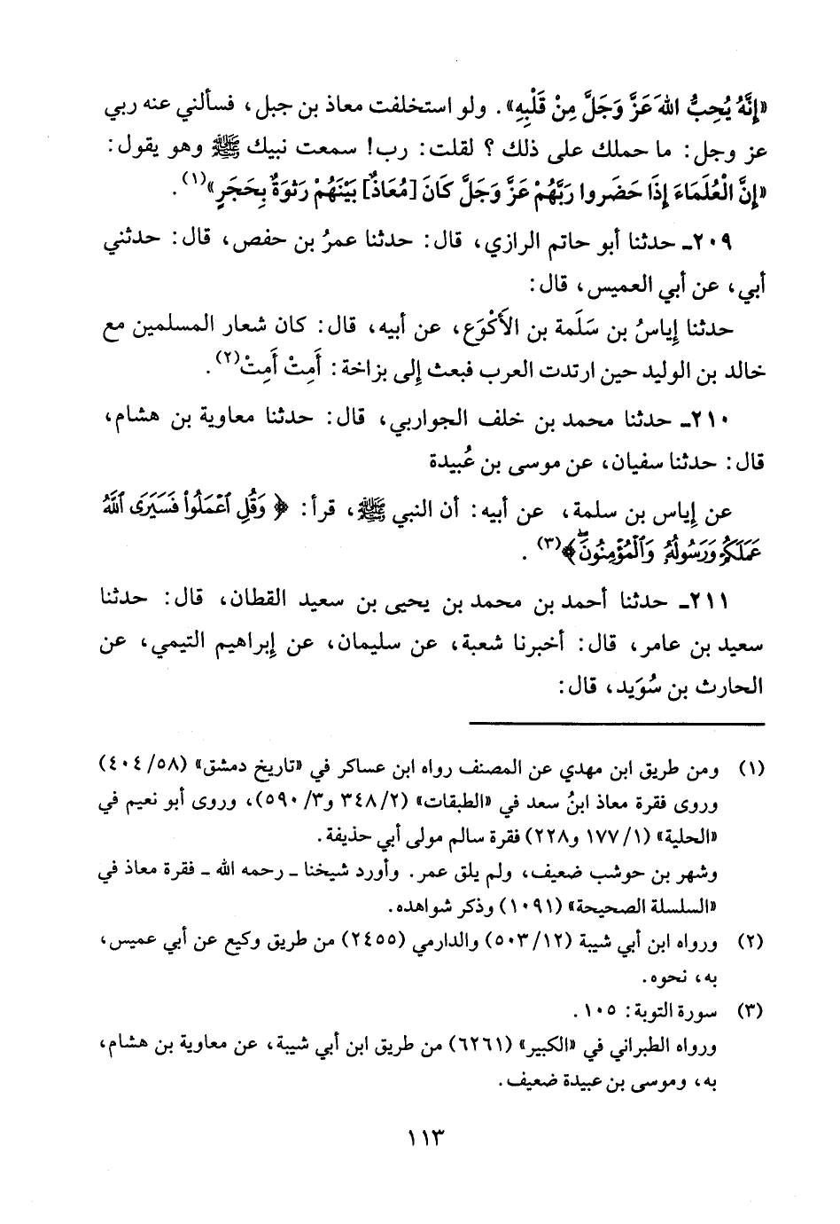 210 - حدثنا محمد بن خلف الجواربي قال: حدثنا معاوية بن هشام قال: حدثنا سفيان عن موسى بن عبيدة عن إياس بن أبي سلمة عَنْ أَبِيهِ أَنّ النَّبِيَّ صَلَّى اللَّهُ عَلَيْهِ وسلم قرأ {وقل اعملوا فسيرى الله عملكم ورسوله والمؤمنون}.