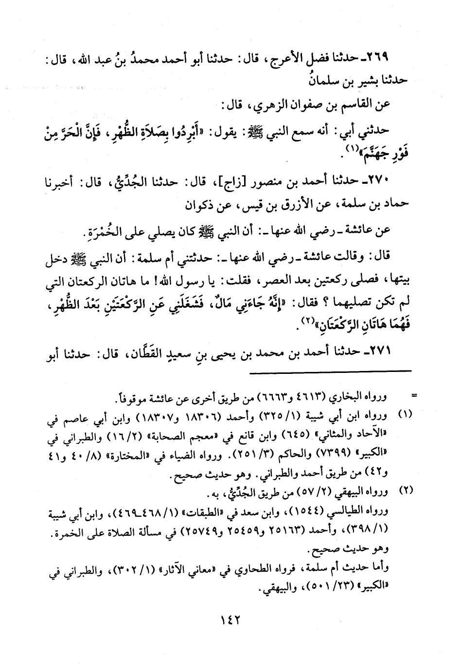 269 - حدثنا فضل الأعرج قال: حدثنا أبو أحمد محمد بن عبد الله قال: حدثنا بشر بن سلمان عَنِ الْقَاسِمِ بْنِ صَفْوَانَ الزُّهْرِيِّ قَالَ: حَدَّثَنِي أَبِي أَنَّهُ سَمِعَ النَّبِيَّ صَلَّى اللَّهُ عَلَيْهِ وَسَلَّمَ يَقُولُ أَبْرِدُوا بِصَلاةِ الظُّهْرِ فَإِنَّ الْحَرَّ مِنْ فَوْرِ جَهَنَّمَ.
