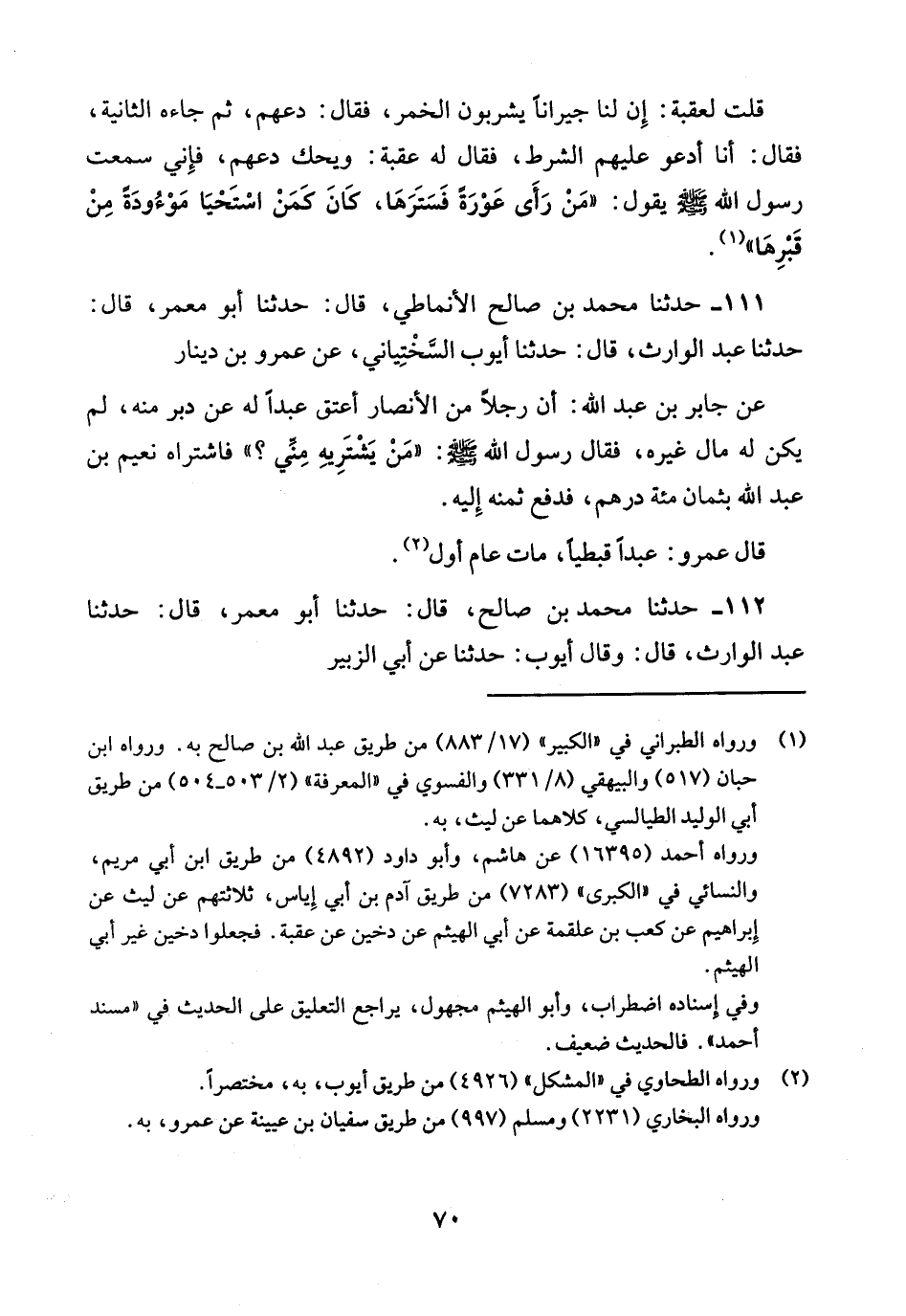 112 - حدثنا محمد بن صالح قال: حدثنا أبو معمر قال: حدثنا عَبْدُ الْوَارِثِ قَالَ وَقَالَ أَيُّوبُ حَدَّثَنَا عَنْ أَبِي الزُّبَيْرِ -[71]- عَنْ جَابِرٍ عَنِ النَّبِيِّ صَلَّى الله عليه وسلم بنحوه.