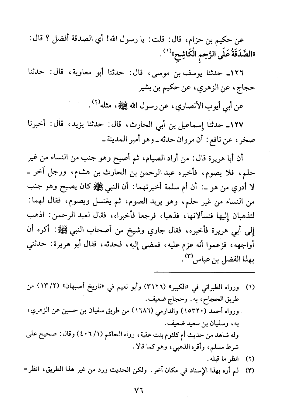 126 - حدثنا يوسف بن موسى قال: حدثنا أبو معاوية قال: حدثنا حَجَّاجٌ عَنِ الزُّهْرِيِّ عَنْ حَكِيمِ بْنِ بَشِيرٍ عَنْ أَبِي أَيُّوبَ الأَنْصَارِيِّ عَنْ رَسُولِ اللَّهِ صَلَّى اللَّهُ عَلَيْهِ وَسَلَّمَ مثله.