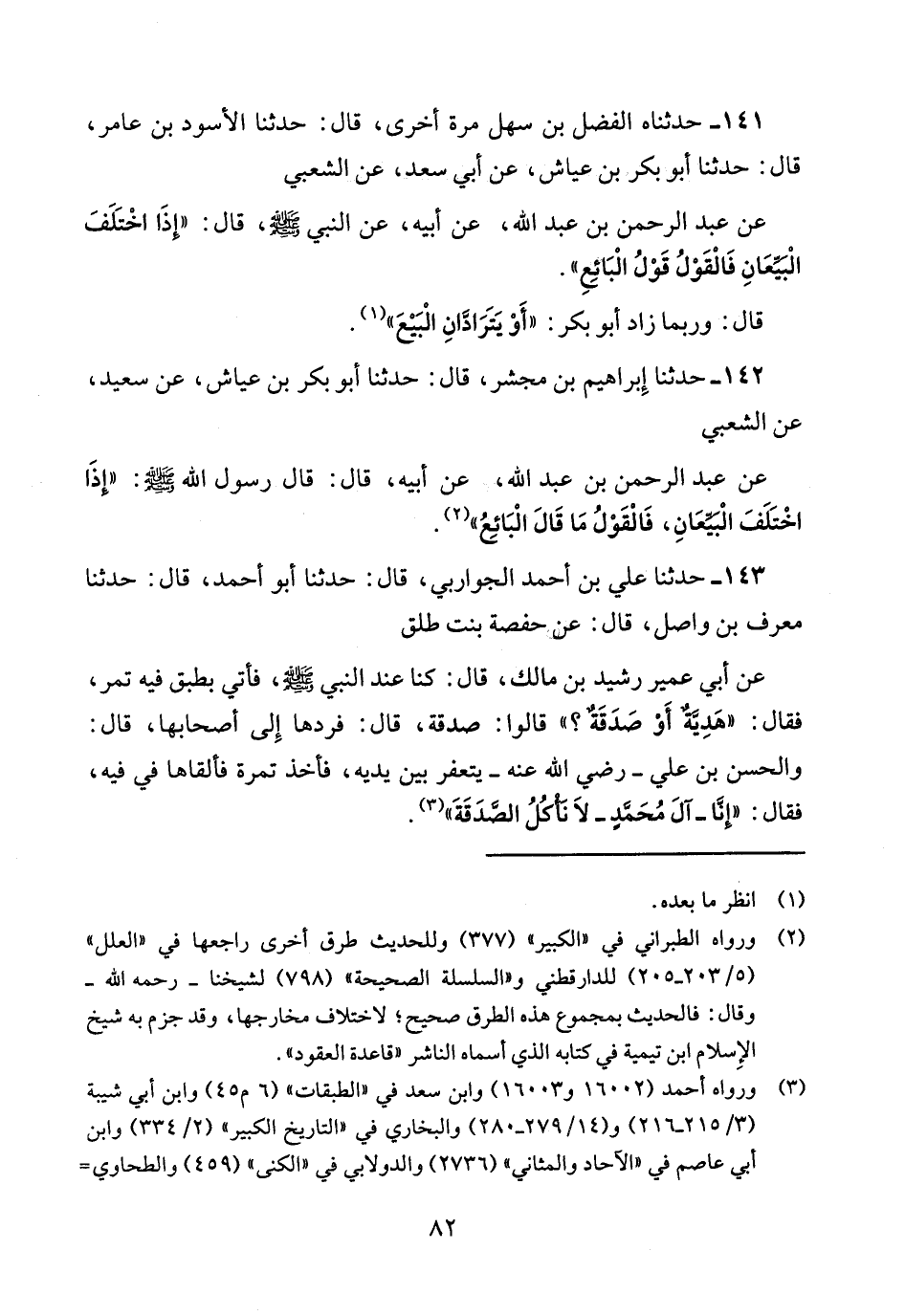 142 - حدثنا إبراهيم بن مجشر قال: حدثنا أبو بكر بن عياش عن سَعِيدٌ عَنِ الشَّعْبِيِّ عَنْ عَبْدِ الرَّحْمَنِ بْنِ عَبْدِ اللَّهِ عَنْ أَبِيهِ قَالَ: قَالَ رَسُولُ اللَّهِ صَلَّى اللَّهُ عَلَيْهِ وَسَلَّمَ إِذَا اخْتَلَفَ البيعان فالقول ما قال البائع.