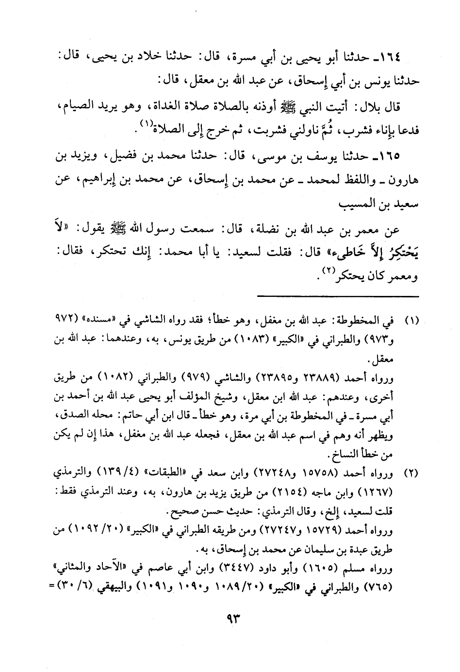 164 - حدثنا أبو يحيى بن أبي مسرة قال: حدثنا خلاد بن يحيى قال: حدثنا يونس بن أبي إسحاق عن عبد الله بن معقل قال: قال بلال أتيت النبي صلى الله عليه وسلم أوذنه بالصلاة صلاة الغداة وهو يريد الصيام فدعا بإناء فشرب ثم ناولني فشربت ثم خرج إلى الصلاة.
